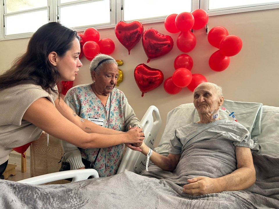 A família chegou para o horário de visita e foi surpreendida pela celebração, que teve bolo, música e uma mensagem especial. O filho do casal, Willian Xavier de Paula, de 57 anos, agradeceu à equipe pelo gesto. “Eu não tenho como agradecer o carinho e o tratamento que meu pai está recebendo aqui. Vocês superaram todas as nossas expectativas. Ele está sendo bem cuidado, está feliz, e isso é o que mais importa para nós”, disse.