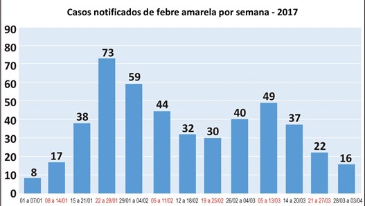 A Secretaria de Estado da Saúde (Sesa) vem registrando queda nas notificações de casos suspeitos de febre amarela, conforme demonstra quadro abaixo.