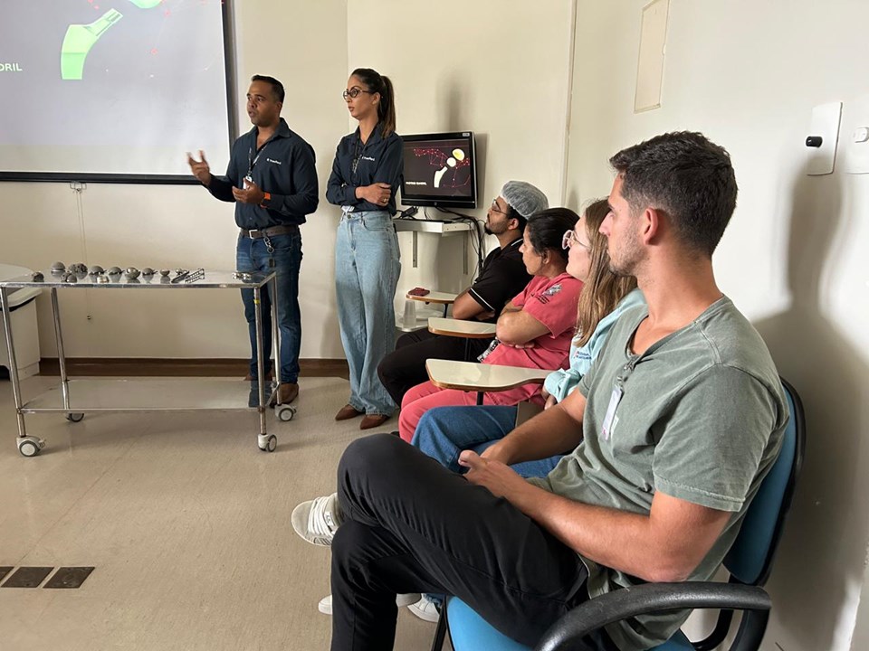 Na sequência, a programação seguiu com capacitação voltada para próteses de quadril, incluindo procedimentos primários e de revisão, temas que exigem conhecimento técnico aprofundado e constante atualização.