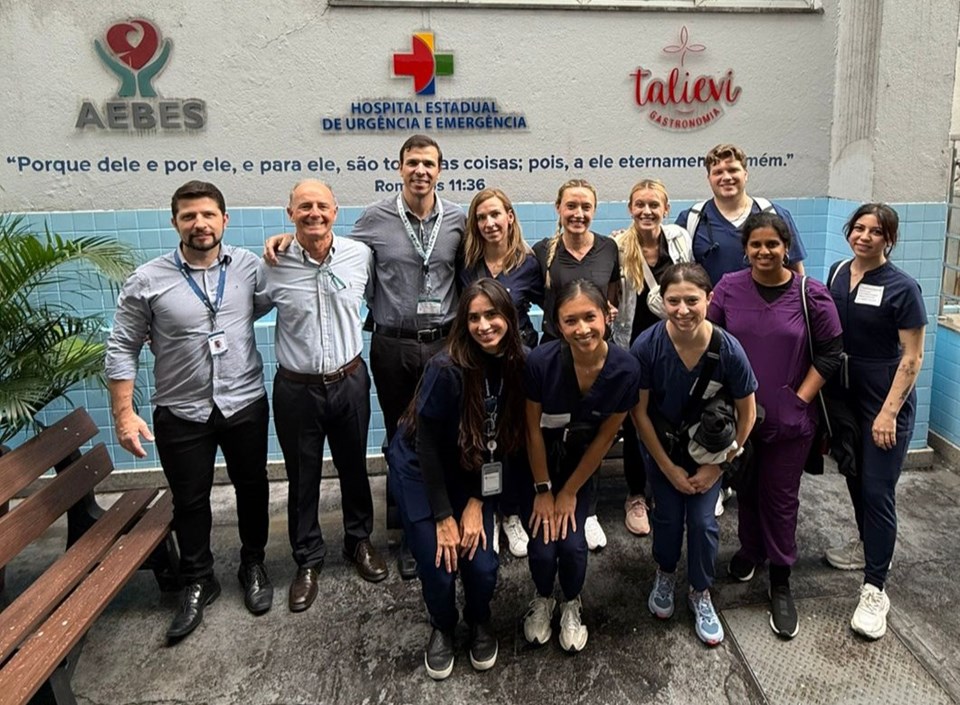 O serviço de cirurgia bucomaxilofacial do Hospital Estadual de Urgência e Emergência ‘São Lucas’, em Vitória, recebeu a visita de um grupo de oito estudantes de Odontologia da Universidade do Colorado, nos Estados Unidos, em uma visita técnica que integra o programa de intercâmbio promovido pela Universidade Federal do Espírito Santo (Ufes). A visita aconteceu na última semana de maio, e o grupo foi acompanhado pelos cirurgiões bucomaxilofaciais que trabalham no Hospital São Lucas, Rafael Cypriano, Thassio Vidal e pela residente Loyane Novaes, além do professor da Ufes, André Puppin.