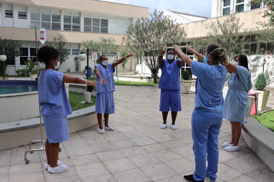 “Essa é mais uma ferramenta de humanização que auxilia na recuperação pós-cirúrgica ou mesmo no pré-operatório. Para tanto, cada paciente é avaliado individualmente e aqueles com mobilidade, lúcidos e orientados são convidados à prática da fisioterapia ao ar livre”, explicou a fisioterapeuta Kelly Pereira.