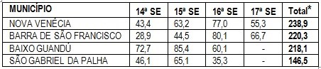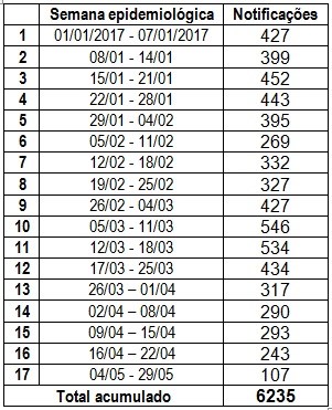 O Boletim Epidemiológico da Dengue é apresentado de duas formas: uma tabela com a indicação das notificações em números absolutos por semana epidemiológica e outra com a incidência de casos de dengue por município.