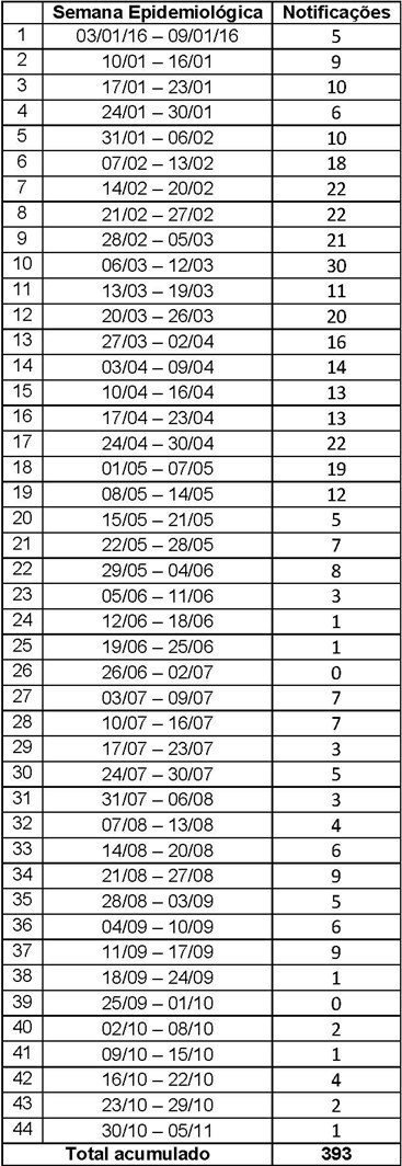 Tabela com o número de notificações de Chikungunya por semana epidemiológica 2016