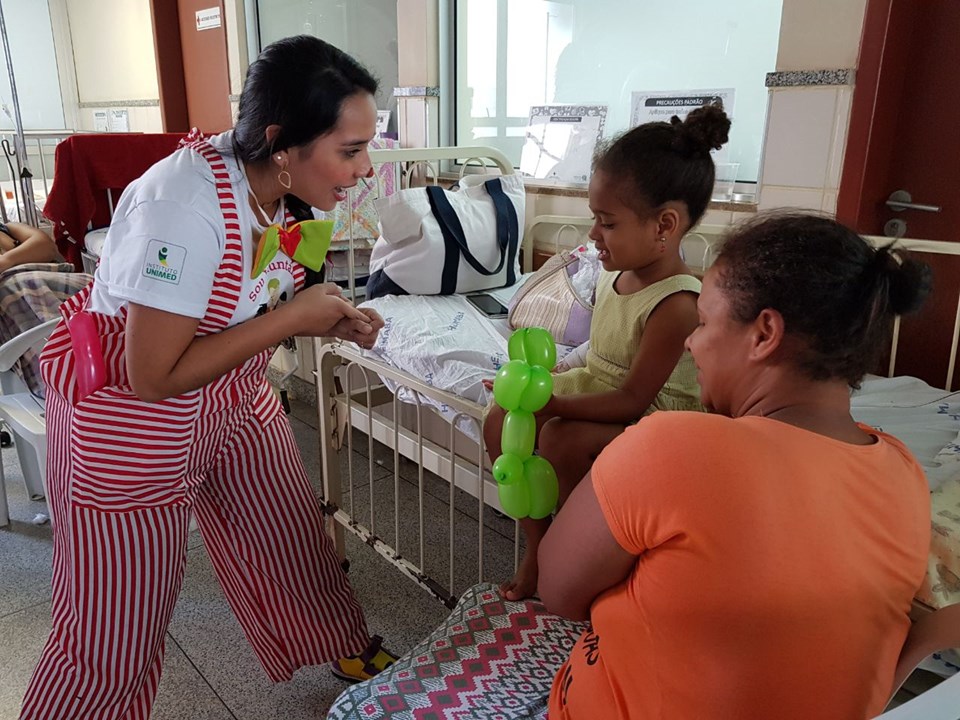 “É uma sensação muito boa ver meu filho feliz, mesmo dentro de um local que é preciso ter muita restrição, como é o hospital. Trazer esse mundo mágico e as brincadeiras de criança, que ela tanto gosta, é trazer a minha felicidade também. Estou muito satisfeita pela atenção dada por todos aqui, desde a recepção até os médicos”, disse Nestina Lopes de Sousa, mãe da paciente Kamilly de Sousa Soares, de 3 anos, que não largava a bola colorida que ganhou.