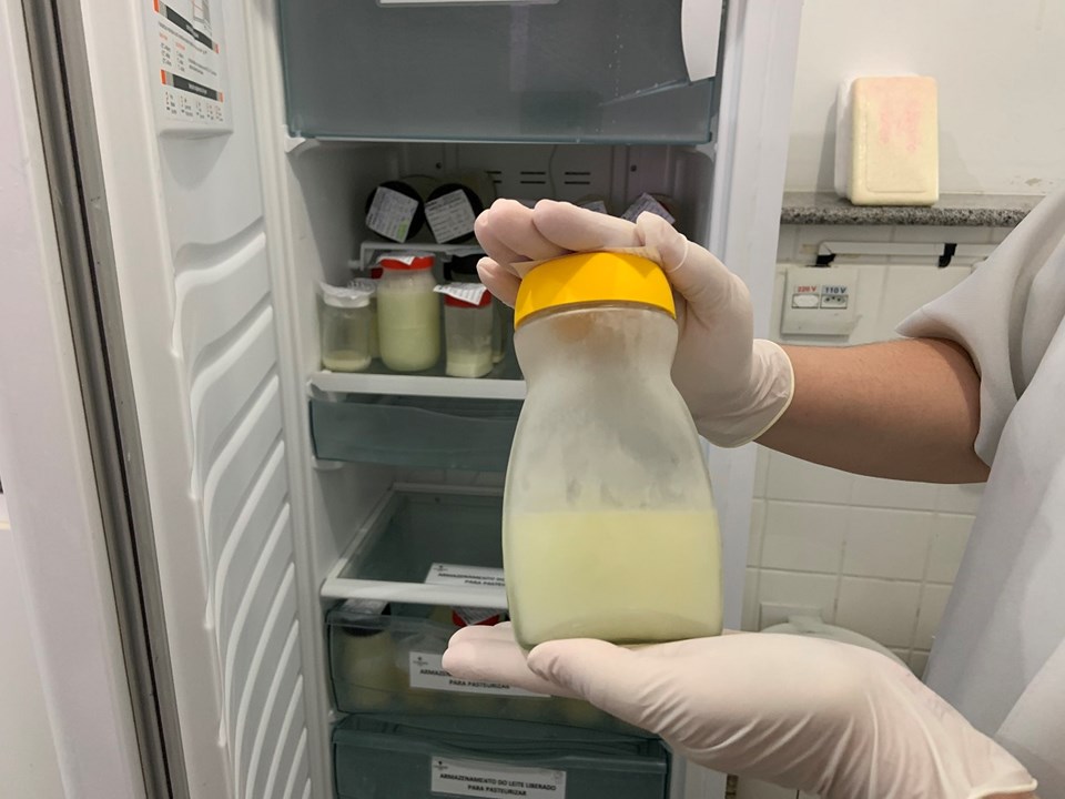 Para fazer a conservação do leite materno doado e facilitar o trabalho de descongelamento do leite, os frascos de vidros de tamanho médio ou pequeno, tipo os de café solúvel, são os ideais. Também não acumulam cheiro e nem resíduos com o uso da tampa de plástico. Todos os potes doados passam por um processo de higienização.