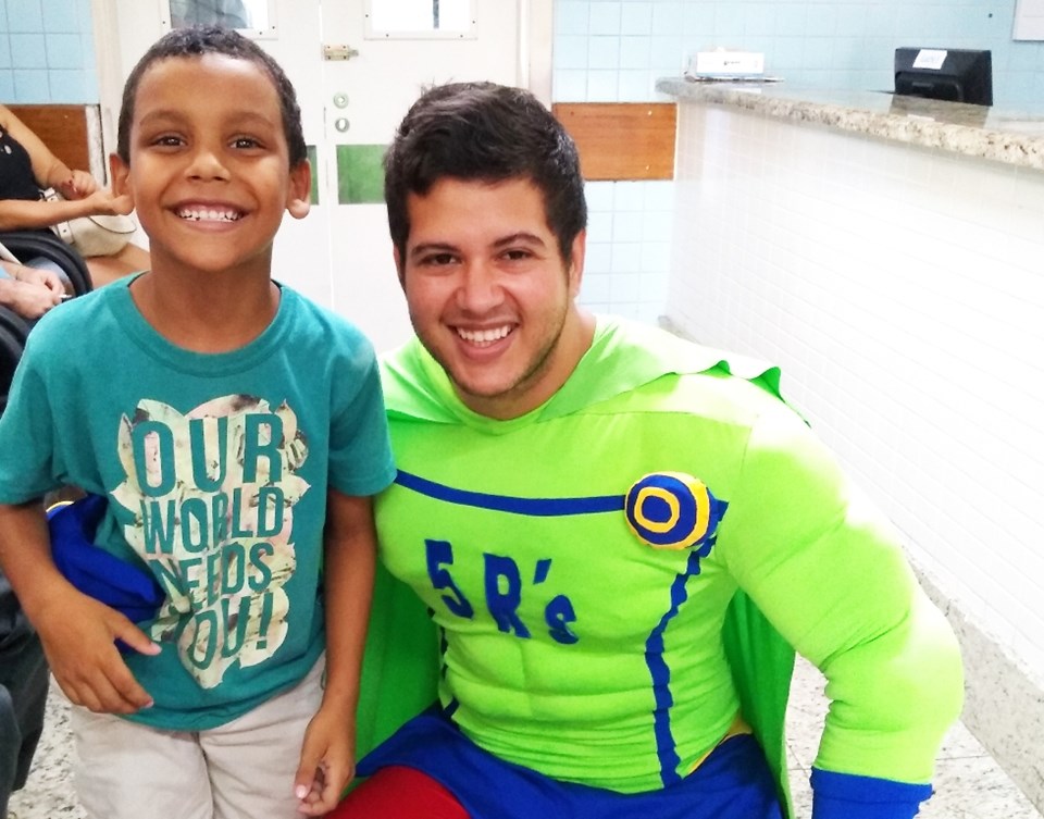 Fantasiado de super-herói, o personagem intitulado de 5Rs, – que simboliza as práticas de sustentabilidade: Reduzir, Repensar, Reutilizar, Reciclar e Recusar, da campanha interna de redução de custos do hospital - chamou a atenção do pequeno Pedro Lucas Sousa Nascimento, de 6 anos, que aguardava com a mãe, o pai que estava em atendimento no hospital. “Ele é bem forte e engraçado, tem poderes e veio ajudar as pessoas”, comentou.