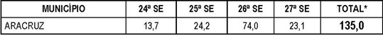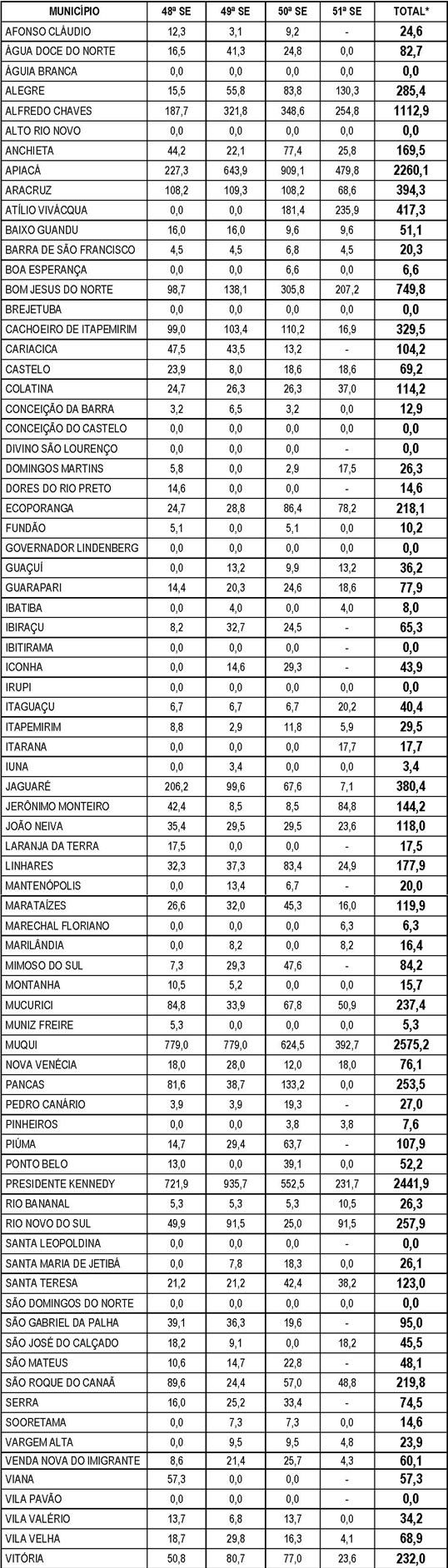 A Secretaria de Estado da Saúde (Sesa) vem registrando queda no número de casos notificados de dengue e, do total acumulado das últimas quatro semanas, 77 (98,71%) do total de 78 cidades capixabas aparecem com baixa incidência (confira na tabela abaixo). Isso é resultado do trabalho do Gabinete de Monitoramento de Combate ao Aedes aegypti, que avalia e define estratégias de combate ao mosquito, em conjunto com municípios e superintendências regionais de Saúde do Estado, e do apoio da população.