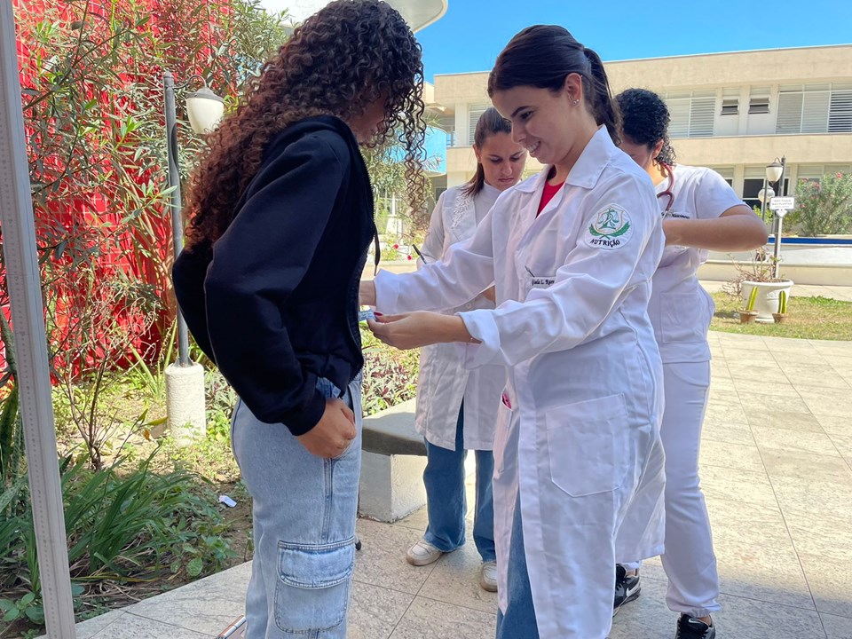 Na Praça Central do hospital, foi montado um circuito multiprofissional em que acadêmicos de diversas áreas da saúde, sob a supervisão de preceptores, realizaram uma série de avaliações e orientações.