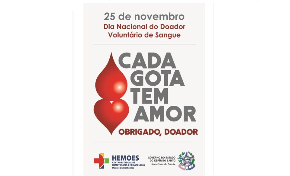 Com o tema “Cada Gota tem Amor”, a Secretaria da Saúde (Sesa), por meio do Centro Estadual de Hemoterapia e Hematologia Marcos Daniel Santos (Hemoes), vai promover uma programação especial, entre os dias 23 e 26 de novembro, para homenagear os doadores de sangue, chamar atenção para a importância da doação contínua e sensibilizar novos doadores.