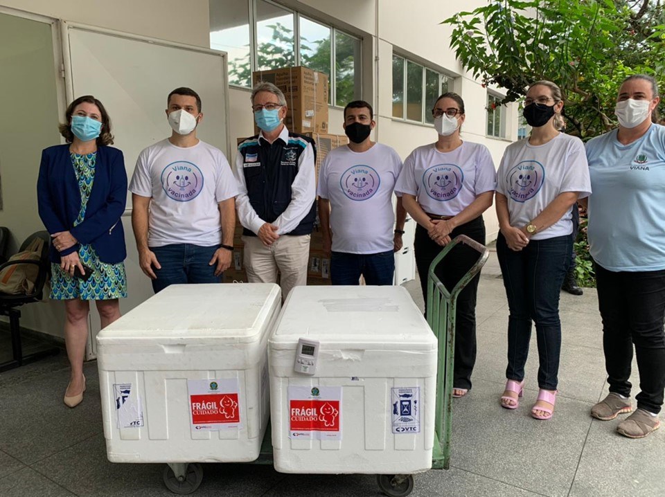 A entrega contou com a presença do prefeito da cidade de Viana, Wanderson Bueno; do vice-prefeito, Fabio Dias; da subsecretaria municipal de Saúde, Jaqueline Jubini; e da coordenadora do Programa Estadual de Imunização, Danielle Grillo.