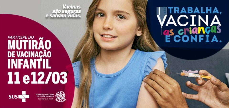 A imunização das crianças contra a Covid-19 é um importante processo no enfrentamento à pandemia. Com o intuito de incentivar o ato e aumentar a cobertura vacinal, o Governo do Estado, por meio da Secretaria da Saúde (Sesa), vai promover, na próxima sexta-feira (11) e sábado (12), o mutirão de vacinação para o público infantil de 05 a 11 anos.