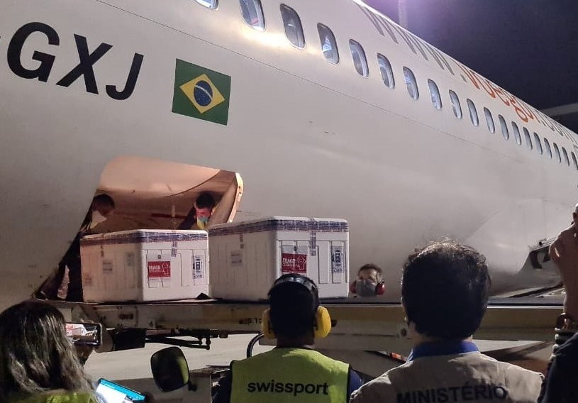 O Espírito Santo recebeu no início da madrugada desta sexta-feira (14) mais 96.050 doses de vacinas para a Campanha de Vacinação contra o novo Coronavírus (Covid-19). São 43.800 doses da Coronavac (Sinovac/Butantan) e 52.250 doses da Covishield (Oxford/Fiocruz), pertencentes à continuação da 19ª remessa do Ministério da Saúde.