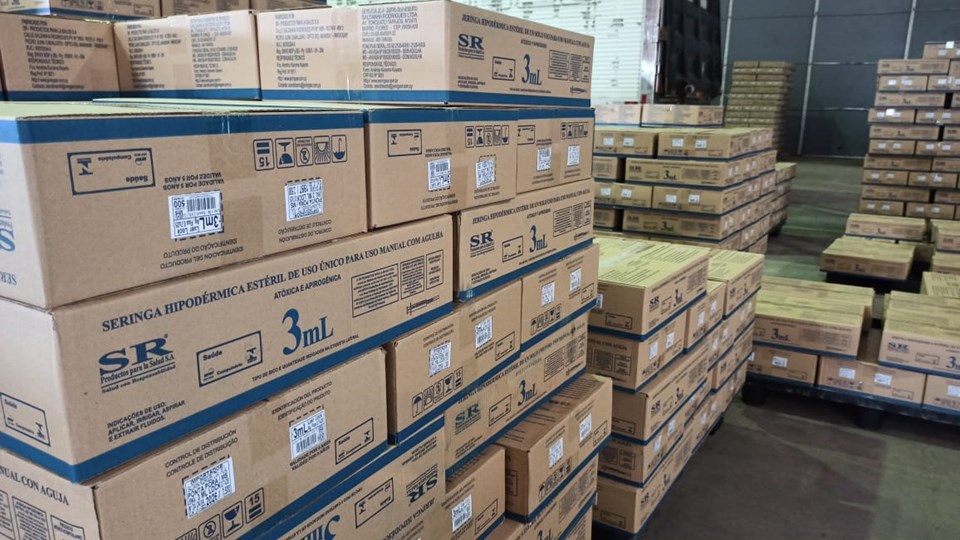 Estado recebe novo lote de 2,3 milhões de seringas para imunização contra a Covid-19