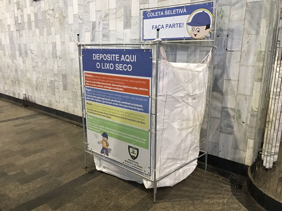 Para acondicionamento e destinação adequada dos resíduos, a coordenação da unidade buscou a parceria da prefeitura, que instalou, na última quarta-feira (05), um Local de Entrega Voluntária (LEV) no pátio do Pró-Cidadão, onde funcionam serviços públicos municipais e onde está localizada a Farmácia Cidadã Estadual da Serra. Os recipientes serão recolhidos também pela prefeitura, uma vez por semana, e distribuídos entre três associações que trabalham com reciclagem no município: Amarvila, Abrasol e Recuperlixo.