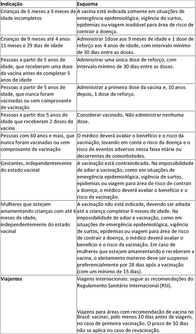 Orientação para vacinação contra febre amarela para residentes em área com recomendação da vacina ou viajantes para essa área