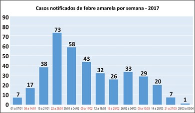A Sesa recebeu notificação de mortes de macacos em 53 municípios, dos quais 24 municípios tiveram amostras confirmadas para febre amarela: Afonso Cláudio, Atílio Vivácqua, Cariacica, Castelo, Colatina, Conceição do Castelo, Domingos Martins, Guarapari, Ibatiba, Irupi, Itaguaçu, Itarana, Iúna, Laranja da Terra, Marechal Floriano, Pancas, Santa Maria de Jetibá, Santa Teresa, Serra, Venda Nova do Imigrante, Viana, Vitória, Aracruz e Vila Velha.