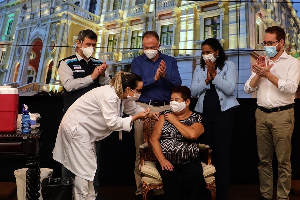 Vacinada, Sonia Lopes representou os professores do Ensino Superior da rede pública e estava muito feliz. “Os professores têm trabalhado exaustivamente para garantir o ensino nesse tempo tão difícil. Tantas mortes, colegas que se foram e não tiveram essa chance. Hoje comemoramos e também nos solidarizamos com os familiares. É um dia de emoção”, relatou.