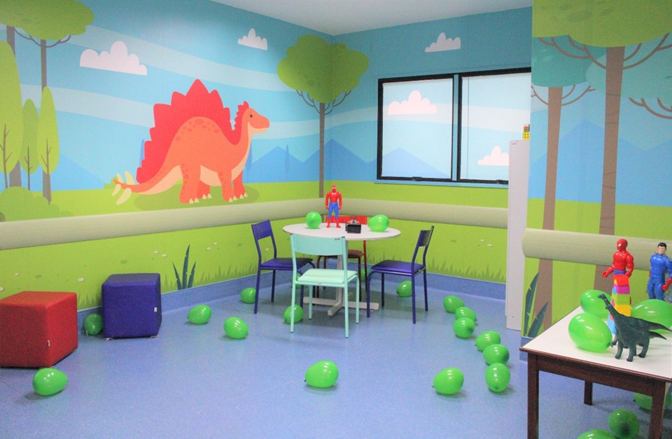 A primeira brinquedoteca, localizada na ala pediátrica do hospital, conta com novo mobiliário, aparelho de televisão e ambientação caracterizada pela temática ‘Natureza’, que reforça a preocupação em cuidar da fauna e flora. Já a segunda, montada no anexo ao Himaba, tem a decoração com o tema ‘Dinossauros’, animais que, por mais de 167 milhões de anos, foram dominantes na Terra.