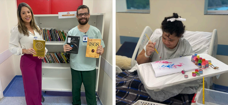 A coordenadora das UTIs, UADC e hemodiálise, Jéssica Sodré e o enfermeiro referência da UADC e Nefrologia, Tiago Silva Pereira, ajudaram a desenvolver os projetos e são também os responsáveis por incentivar a participação dos pacientes, da equipe e também arrecadar novas doações. Orgulhosos do projeto, eles esperam que a leitura e a possibilidade de pintar, desenhar e desenvolver diferentes trabalhos manuais seja um estímulo para a criatividade, um aliado para tornar os momentos no hospital mais agradáveis e até ajudem no processo de socialização e recuperação física, uma vez que a saúde mental estará sendo bem cuidada.