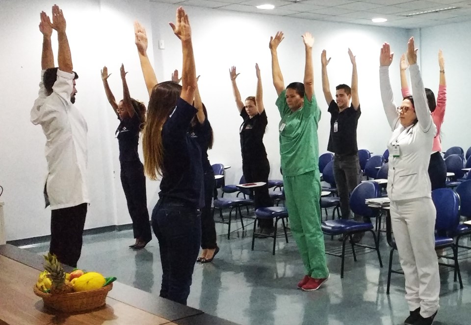 Profissionais do Hospital Estadual São Lucas, em Vitória, deram uma pausa no trabalho e participaram de exercícios de yoga e um bate-papo sobre alimentação saudável e atividade física.