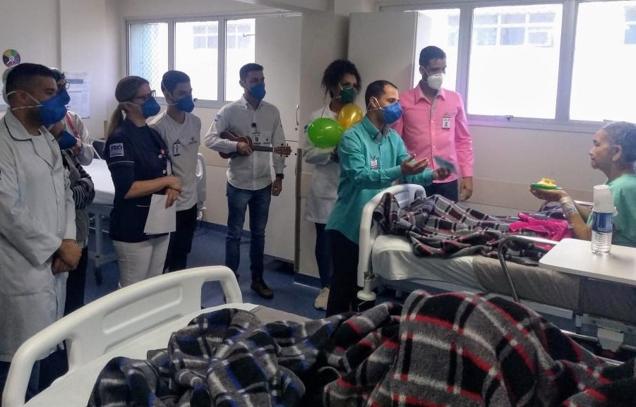 Os colaboradores promovem uma homenagem surpresa e até cantam para pacientes. Além disso, um cartaz de feliz aniversário é afixado no leito e todas as demonstrações de carinho ajudam a melhorar a autoestima, sendo uma ação terapêutica importante para diminuir o estresse pela internação.