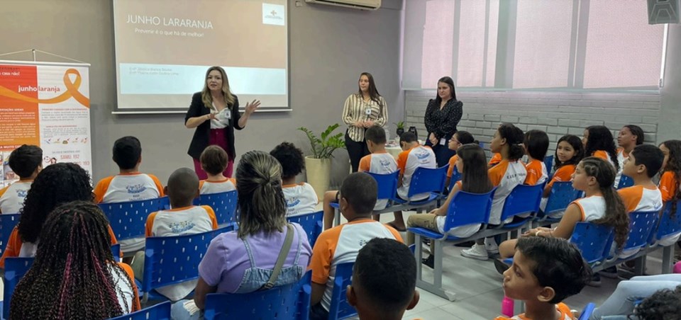 Na tarde dessa quarta-feira (10), a Escola Estadual de Ensino Fundamental (EEEF) Taquara I, localizada na Serra, recebeu o Projeto “Jayme Itinerante” como parte das atividades do “Junho Laranja”, dedicado à prevenção de queimaduras. Coordenada pela equipe do Centro de Tratamento de Queimados do Hospital Estadual Dr. Jayme Santos Neves, com o apoio da Gerência de Acolhimento ao Cliente, a iniciativa teve como objetivo educar e conscientizar os alunos sobre os cuidados necessários quanto aos riscos e medidas preventivas para evitar acidentes.