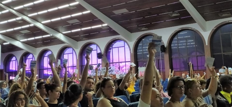 Nesse sábado (01) ocorreu a plenária final para a votação das propostas que foram debatidas e analisadas nos grupos de trabalho durante quatro dias da 9ª Conferência Estadual de Saúde e Etapa Estadual da 16ª Conferência Nacional de Saúde, com o tema “Democracia e Saúde: Saúde como Direito, Consolidação dos Princípios do SUS e Financiamento adequado e suficiente para o SUS”. O evento foi realizado no Sesc de Guarapari entre os dias 29 de maio a 01 de junho.