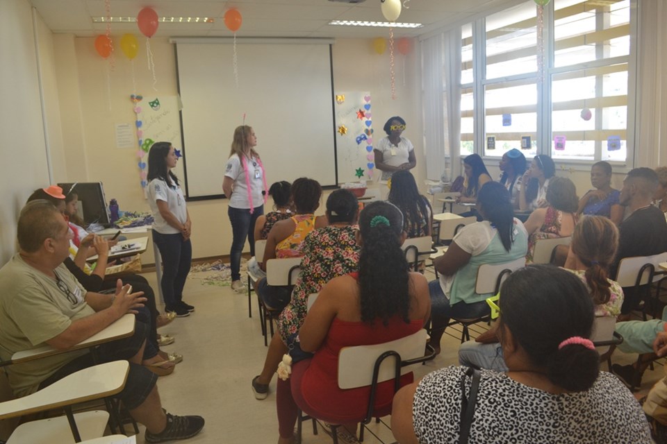 Um grupo de acompanhantes de pacientes internados no Hospital Estadual Dr. Jayme Santos Neves, na Serra, resolveu entrar no clima do carnaval. A Reunião de Acompanhantes, que acontece todas as quintas-feiras, ganhou o tema e o espaço foi decorado de acordo com a data. Tudo preparado com o objetivo de integrar e cuidar também desses homens e mulheres que passam boa parte do tempo dentro da unidade.