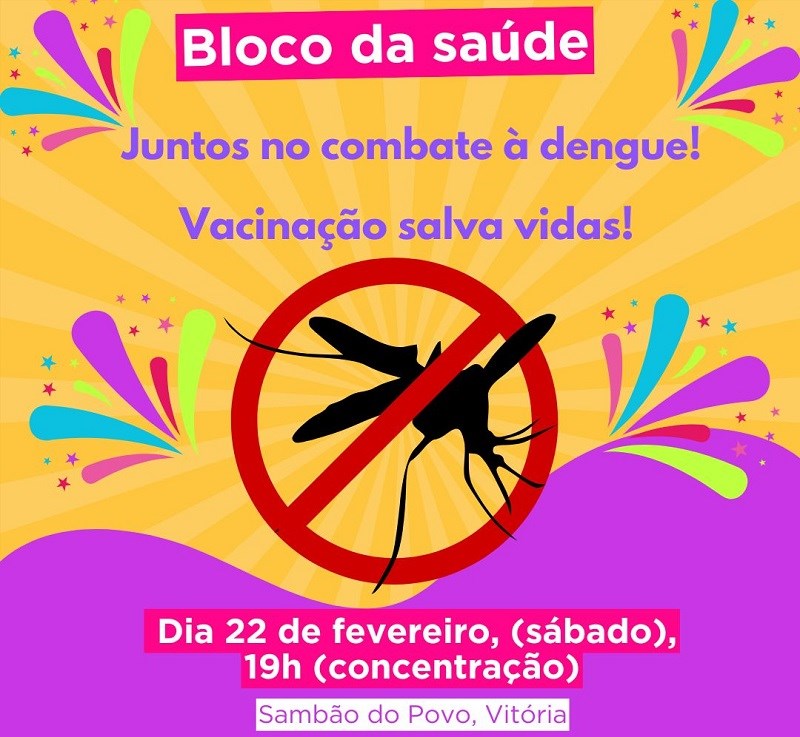 Como parte das ações de mobilização do Plano de Ação para enfrentamento das Arboviroses, a Secretaria da Saúde (Sesa), juntamente com profissionais de saúde de vários municípios, especialmente das Vigilâncias em Saúde, participarão de um desfile especial do Carnaval de Vitória no próximo sábado (22).
