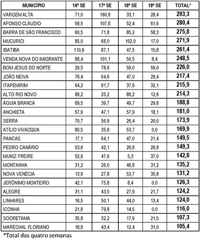 Foram notificados 47.059 casos de dengue entre 03 de janeiro e 14 de maio de 2016 no Espírito Santo. Destes, 506 são suspeitos da forma grave, 19 são óbitos confirmados e 14 são óbitos sob investigação. No mesmo período, a taxa de incidência da doença no Estado ficou em 1.197,46. Essas informações são enviadas à Secretaria de Estado da Saúde até o dia anterior à divulgação do boletim epidemiológico.