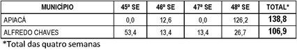 O Boletim Epidemiológico da Dengue é apresentado de duas formas: uma tabela com a indicação das notificações em números absolutos por semana epidemiológica e outra com a incidência de casos de dengue por município.