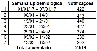 O Boletim Epidemiológico da Dengue é apresentado de duas formas: uma tabela com a indicação das notificações em números absolutos por semana epidemiológica e outra com a incidência de casos de dengue por município.