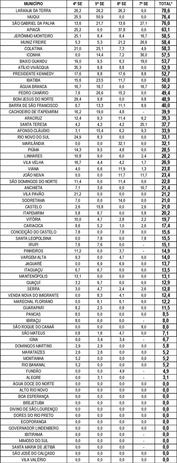 Municípios com incidência média nas últimas quatro semanas
