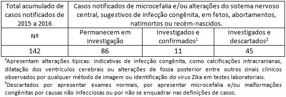 Todos os casos estão sendo investigados. Vale ressaltar que a microcefalia pode ser causada por diversos agentes infecciosos além do vírus zika, tais como sífilis, toxoplasmose, rubéola, citomegalovírus e herpes viral.