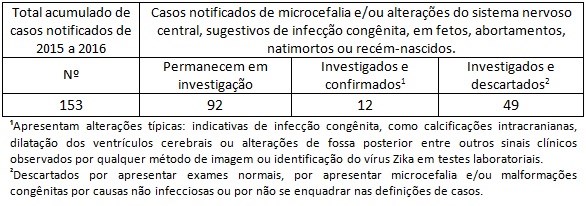 Todos os casos estão sendo investigados. Vale ressaltar que a microcefalia pode ser causada por diversos agentes infecciosos além do vírus zika, tais como sífilis, toxoplasmose, rubéola, citomegalovírus e herpes viral.