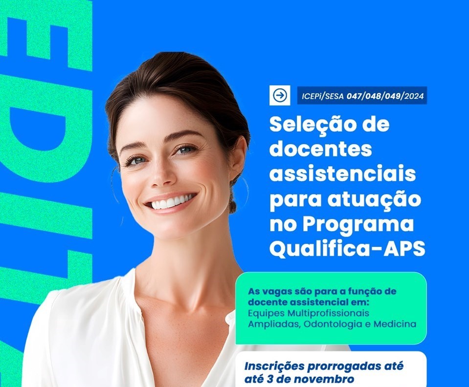 A Secretaria da Saúde (Sesa), por meio do Instituto Capixaba de Ensino, Pesquisa e Inovação em Saúde (ICEPi), lançou três editais com cadastro de reserva para a seleção de docentes-assistenciais no Programa Estadual de Qualificação da Atenção Primária à Saúde (Qualifica-APS). As inscrições vão até o dia 03 de novembro, pelo site https://icepi.es.gov.br/editais/abertos.