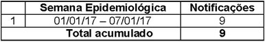 Tabela com o número de notificações de Chikungunya por semana epidemiológica 2017