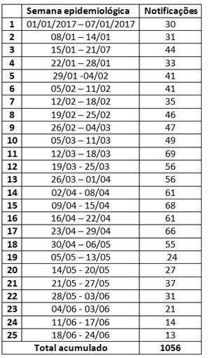 A Secretaria de Estado da Saúde (Sesa) informa que foram notificados no Espírito Santo 1.026 casos de Chikungunya entre 1º de janeiro de 2017 e o último sábado (24). Dentro desse total há 01 óbito confirmado. Há registro de circulação do vírus em 19 municípios: Alfredo Chaves, Aracruz, Afonso Cláudio, Baixo Guandu, Cariacica, Cachoeiro de Itapemirim, Conceição da Barra, Colatina, Guarapari, Guaçuí, Jerônimo Monteiro, Linhares, Montanha, Nova Venécia, Serra, São Mateus, Vargem Alta, Vila Velha e Vitória.