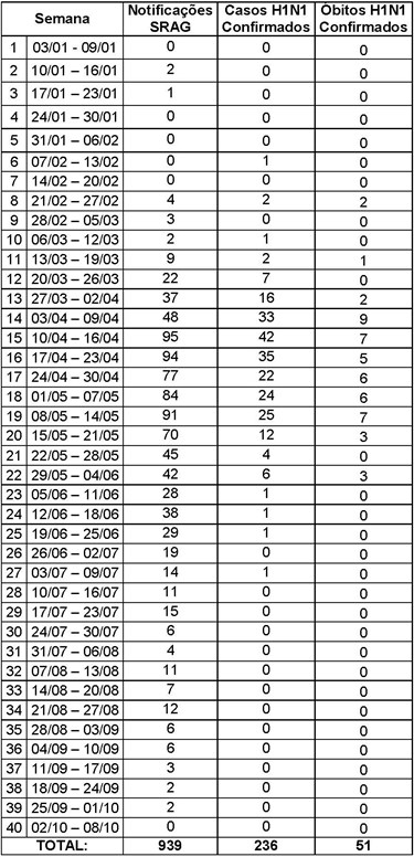 Quanto ao número de óbitos causados por H1N1, foram registrados 51, entre 03 de janeiro e 08 de outubro de 2016. Dois óbitos por Síndrome Respiratória Aguda Grave estão em investigação para determinar o agente causador, uma vez que a SRAG pode ter diferentes causas, não somente os vírus Influenza.