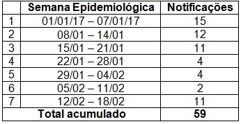 Tabela com o número de casos de zika por semana epidemiológica 2017