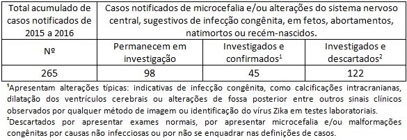 Todos os casos estão sendo investigados. Vale ressaltar que a microcefalia pode ser causada por diversos agentes infecciosos além do vírus zika, tais como sífilis, toxoplasmose, rubéola, citomegalovírus e herpes viral.