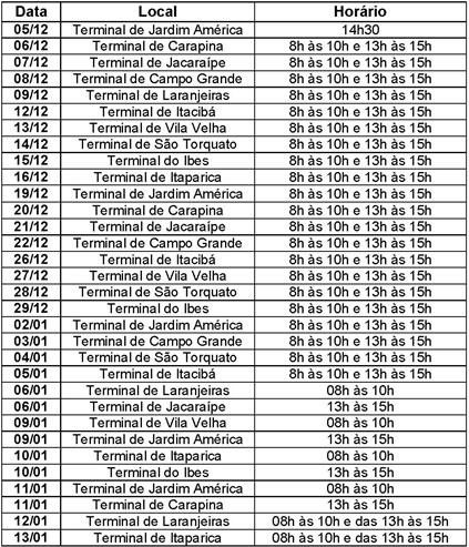 A Secretaria de Estado da Saúde lançou, nesta segunda-feira (05), a nova etapa do Movimento 21 Dias – Uma vida saudável não pode parar–, que vai contar com uma série de ações nos Terminais do Transcol na Grande Vitória (confira programação abaixo). As atividades começaram pelo Terminal de Jardim América. De hoje até a primeira quinzena de janeiro de 2017, quem passar pelos Terminais poderá aferir pressão, medir altura, saber o peso e aprender algumas técnicas de alongamento. Uma exposição vai mostrar a quantidade de açúcar e gordura em alguns alimentos e os prejuízos que causam à saúde.