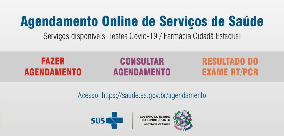 Os agendamentos estão disponibilizados das 7h30 às 18h de acordo com os horários e dias definidos por cada ponto de coleta, e podem ser realizados independentemente de o paciente estar sintomático ou assintomático. Os resultados são liberados pelo Laboratório Central de Saúde Pública do Espírito Santo (Lacen/ES) em até 48 horas após o material ser coletado.