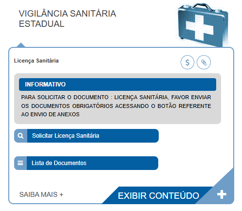 - Clique no botão "Solicitar Licença Sanitária".