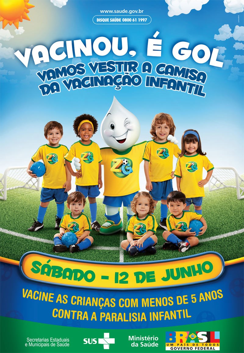 Será realizado no sábado (12) o “Dia D” da primeira etapa da Campanha Nacional de Vacinação contra a Poliomielite (paralisia infantil) que, este ano, tem como tema: “Vacinou. É gol. Vamos vestir a camisa da vacinação infantil”. No Estado, a meta é vacinar pelo menos 264.038 crianças, para que seja alcançada a cobertura de 95% da população capixaba menor de cinco anos de idade. A segunda etapa será realizada em 14 de agosto.