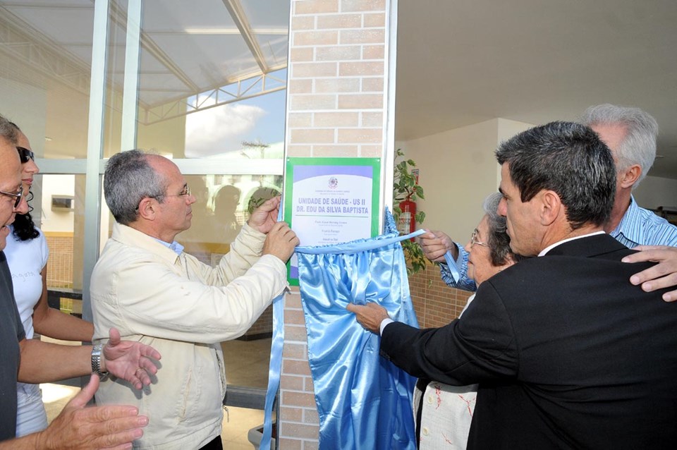 Após a inauguração, o governador e comitiva seguiram para o Bairro São Sebastião, onde foi realizada a solenidade de autorização para o início das obras da Unidade Saúde da Família da comunidade. Durante o evento, o Governo do Estado também renovou a adesão do município a um sistema estadual que gera economia na aquisição de remédios e formalizou o termo de concessão de kits para as equipes da Estratégia Saúde da Família.