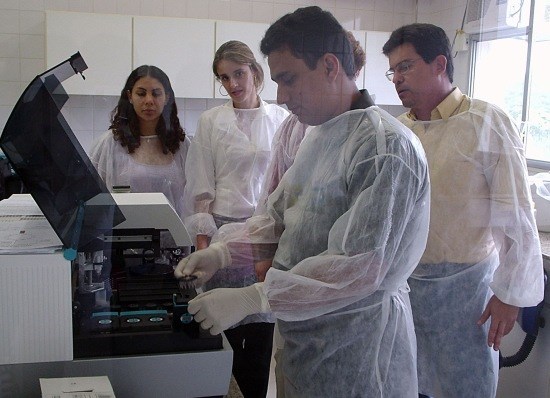 A equipe de bioquímicos e técnicos de laboratórios do Lacen, que ficará responsável pelos exames, está participando de um treinamento com os assessores técnicos das empresas fabricantes dos testes.