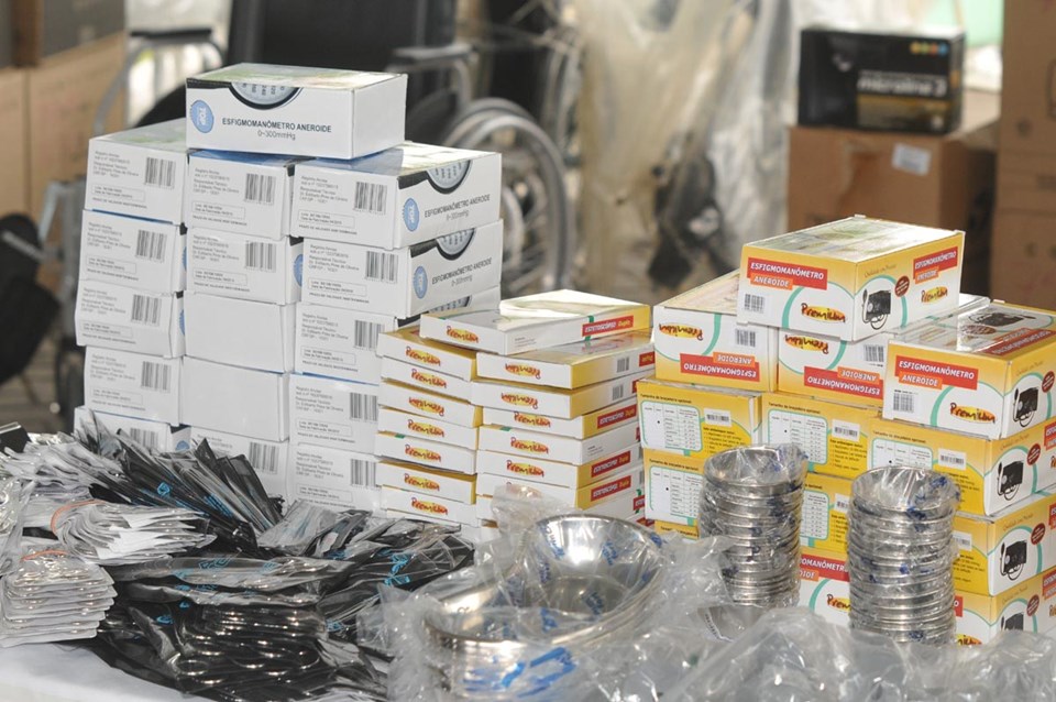 Com a entrega do material, avaliado em R$ 1.537.000,00, a Sesa pretende reforçar o atendimento na atenção primária, “porta de entrada” do sistema de saúde pública. Os kits são compostos por 38 itens médico-hospitalares, como cadeira de rodas, mesa ginecológica, estetoscópios, otoscópio/lanterna, otoscópio (aparelhos de fonoaudiologia) tensiômetros (medidores de pressão), sonar/detector fetal (utilizado para detectar batimentos cardíacos fetais), microfones, máscaras de oxigênio, foco refletor de luz fria, armário, divisória móvel, entre outros.